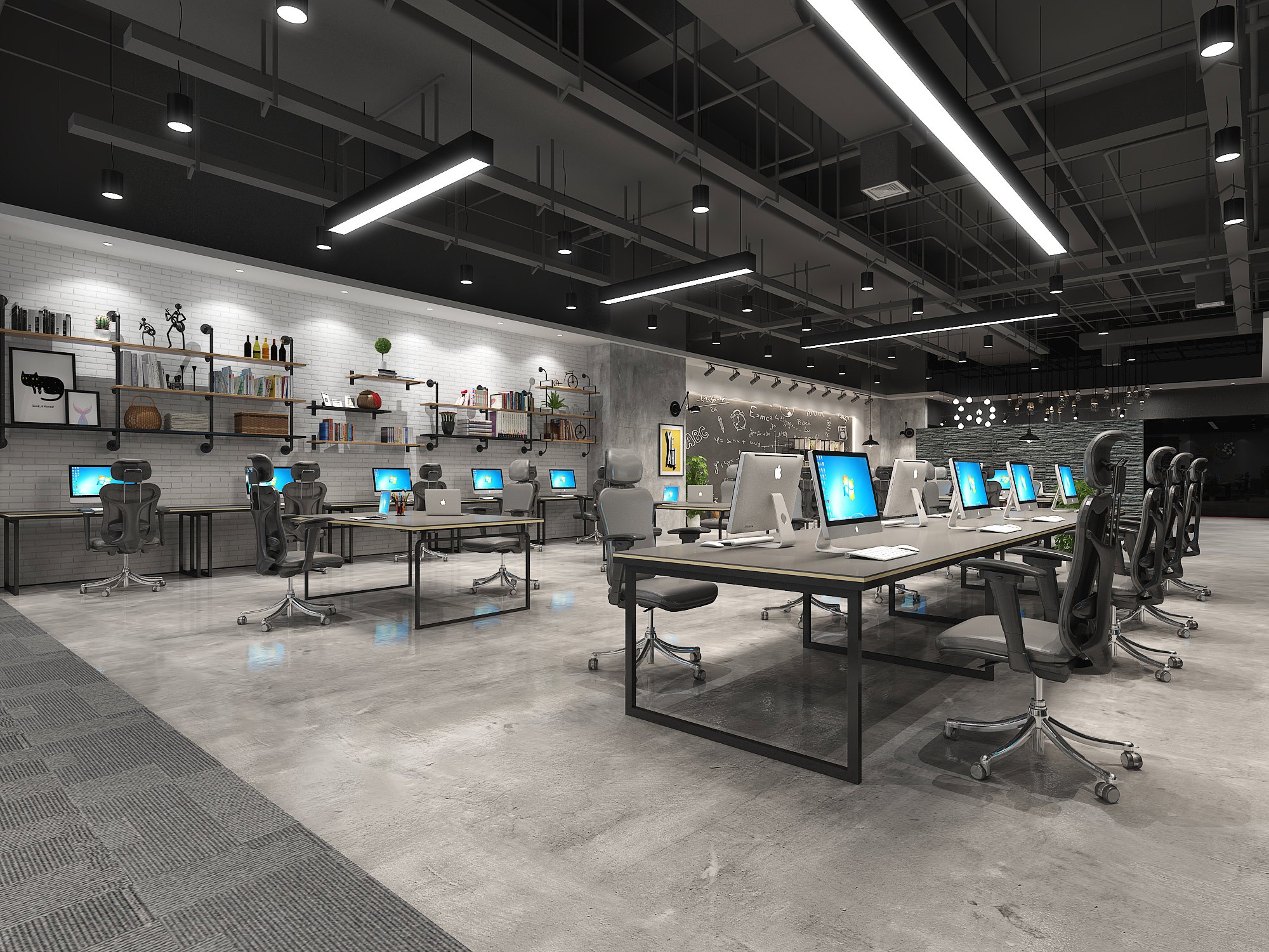 3?? **工業(yè)風(fēng)**:以黑色、灰色和深棕色為主色調(diào),搭配鐵藝裝飾,展現(xiàn)出穩(wěn)重與力量感。這種風(fēng)格適合創(chuàng)意產(chǎn)業(yè)公司和聯(lián)合辦公場(chǎng)地,能夠激發(fā)員工的創(chuàng)造力和靈感。