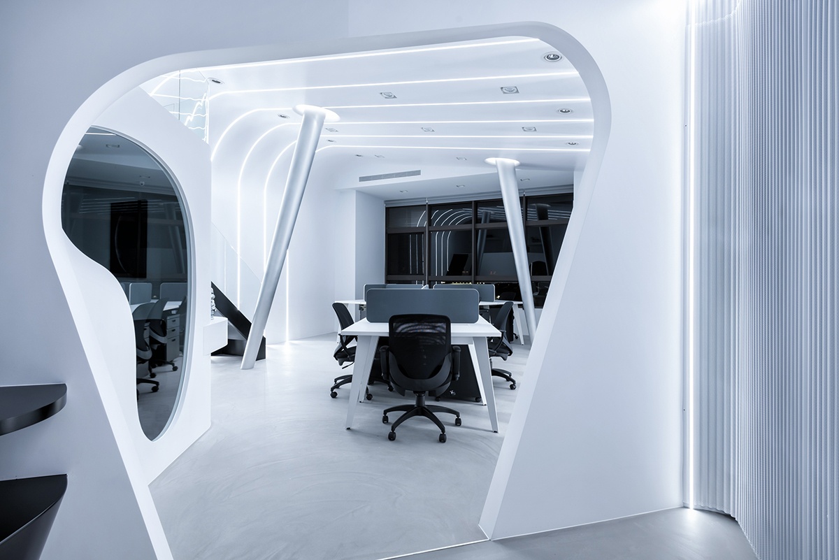 1?? **科技風(fēng)**:此風(fēng)格以白色簡(jiǎn)約色調(diào)為基礎(chǔ),巧妙融合幾何元素與燈光裝飾,同時(shí)融入品牌VI元素,營(yíng)造出充滿科技感的辦公空間。這種風(fēng)格特別適合科技型企業(yè)和生物科技展廳,能夠彰顯企業(yè)的前沿科技形象。