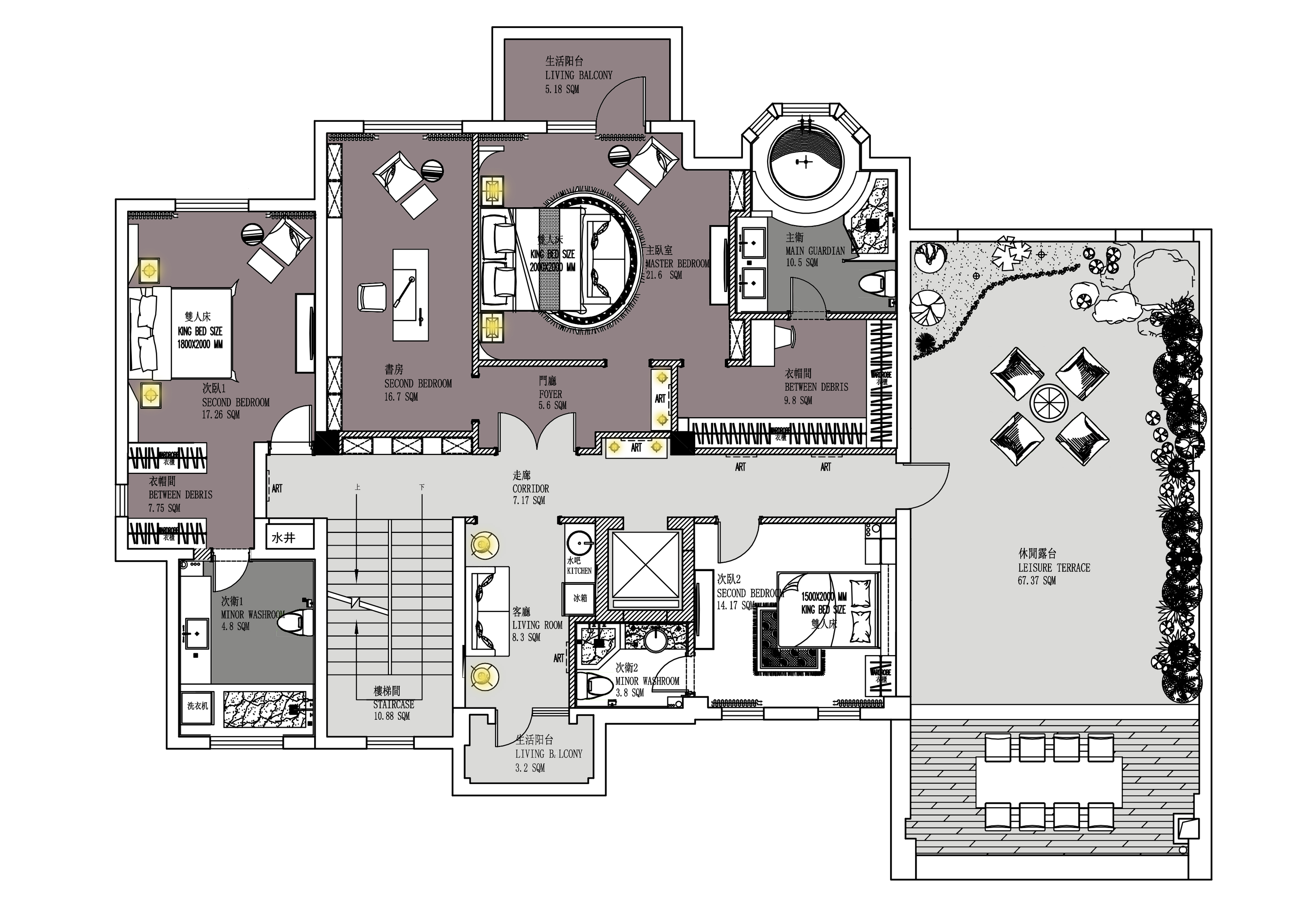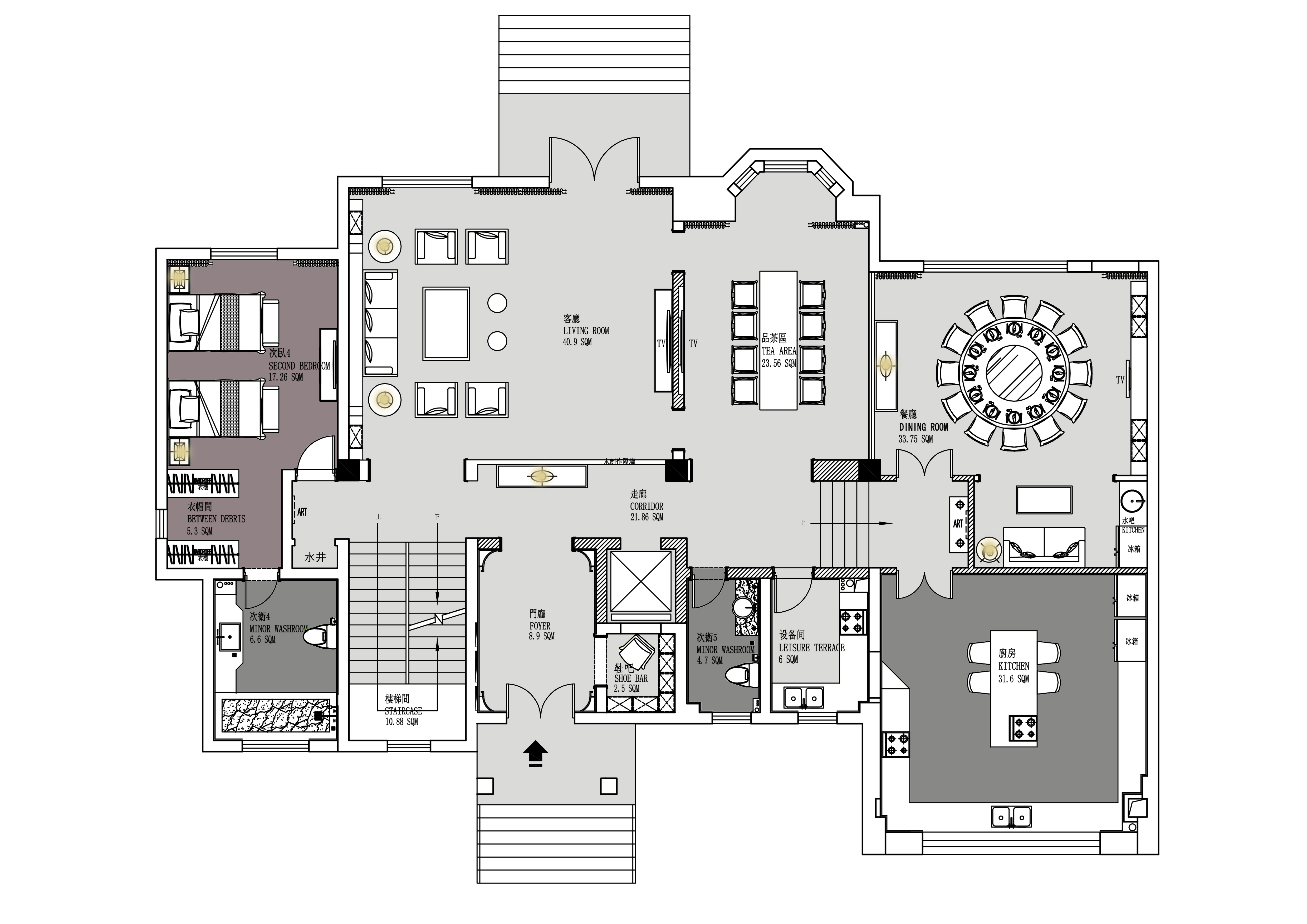 本案以現(xiàn)代的審美需求來打造富有中式韻味的空間,將設(shè)計注入了一股嶄新的東方風(fēng)格,簡化了傳統(tǒng)中式風(fēng)格的經(jīng)典花鳥山水等元素,融入了現(xiàn)代的金屬線條元素加以點綴。營造輕于表,奢于內(nèi)的效果。將中國傳統(tǒng)美學(xué)的脈絡(luò)得以蔓延下去。