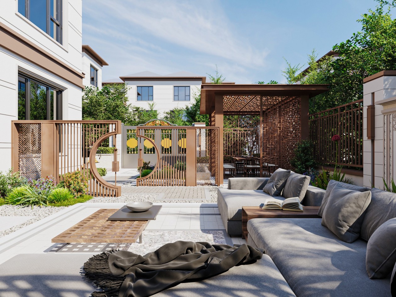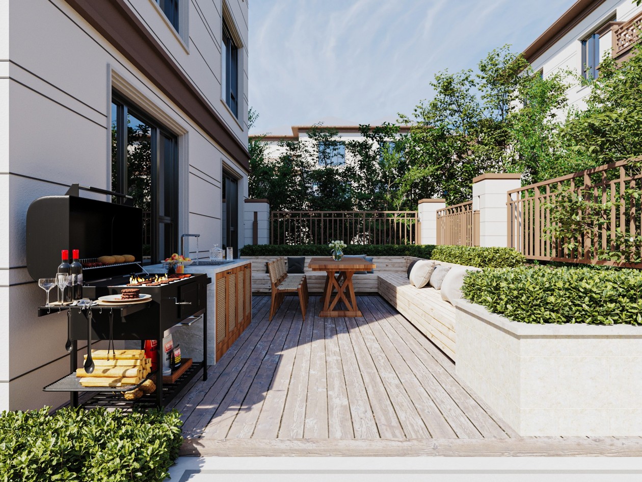 建筑的中與西結(jié)合得如此和諧,中式的基礎韻味與西式的建筑符號和細節(jié)取長補短,不但富有審美的愉悅,更重要的是令居住舒適而貼近自然。